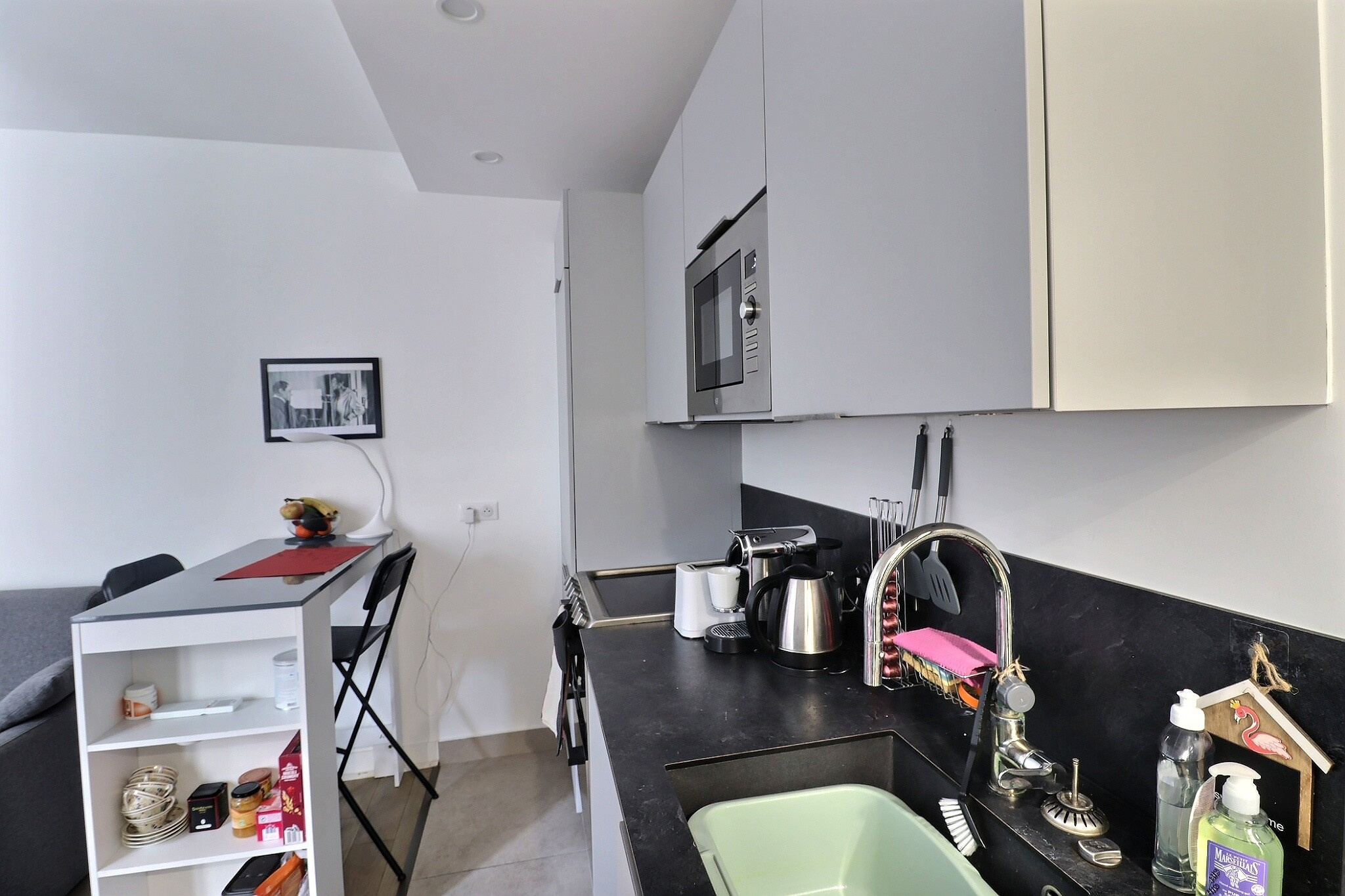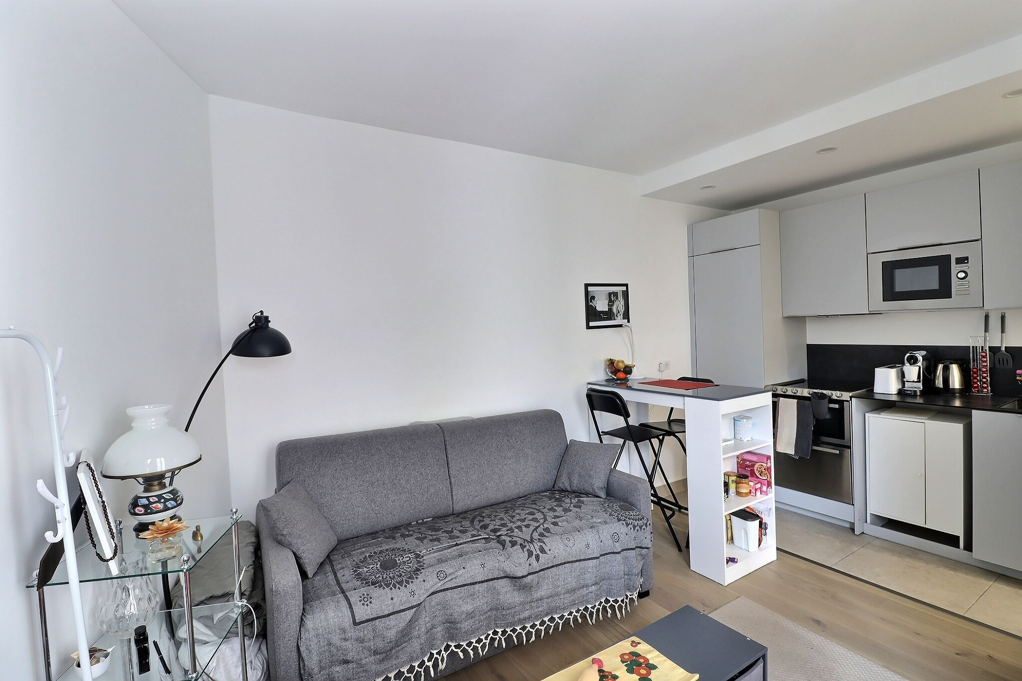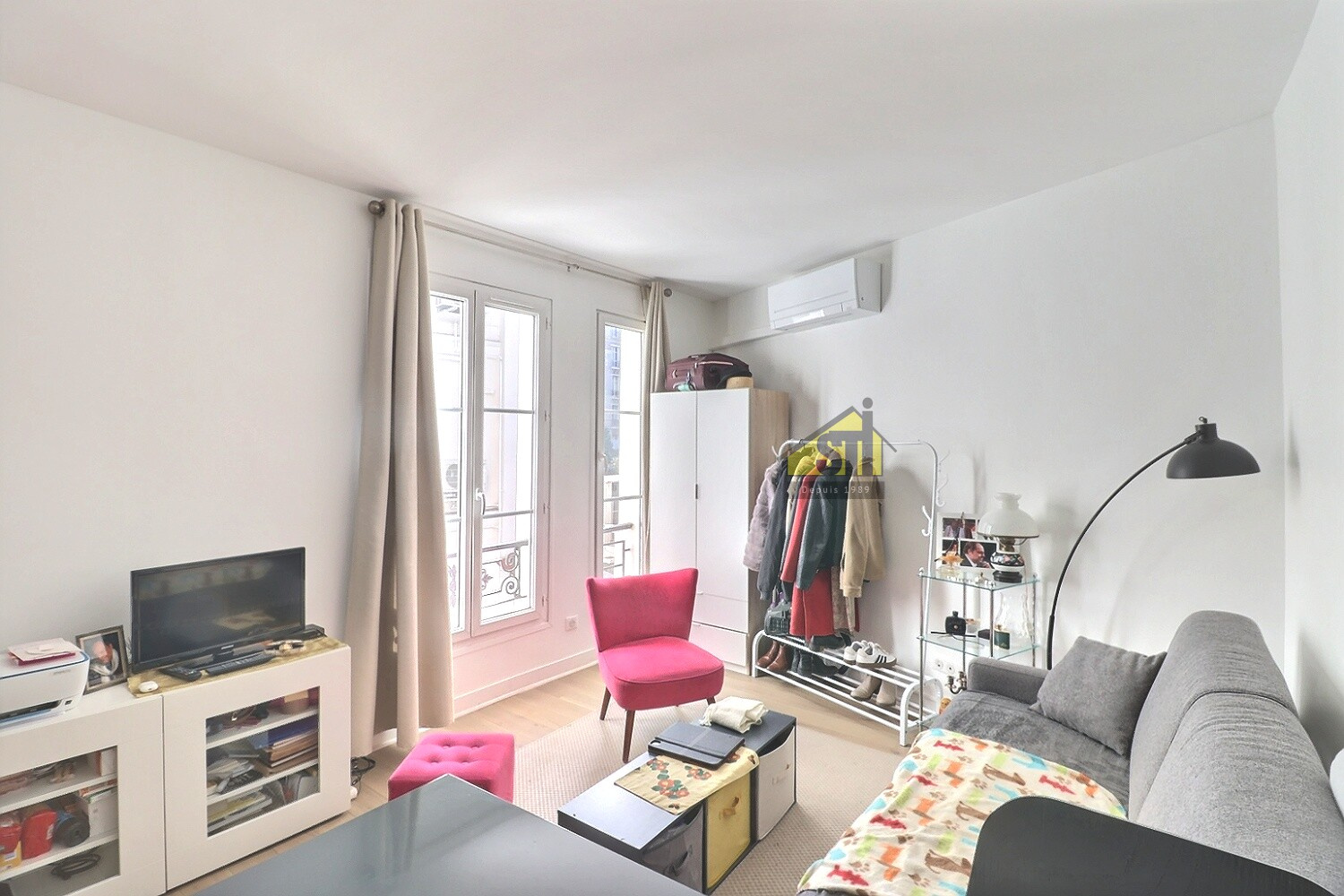 EXCLUSIVITE STI. Edgar Quinet Vavin. Joli studio de 21m² en parfait état. Dans un immeuble réhabilité de standing avec installation d'une pompe à châleur réversible (hiver-été), pied à terre idéal à proximité directe de la Gare du Montparnasse. Pièce de vie principale, coin cuisine américaine, salle d'eau avec WC. Un débarras à l'étage accompagne ce bien.