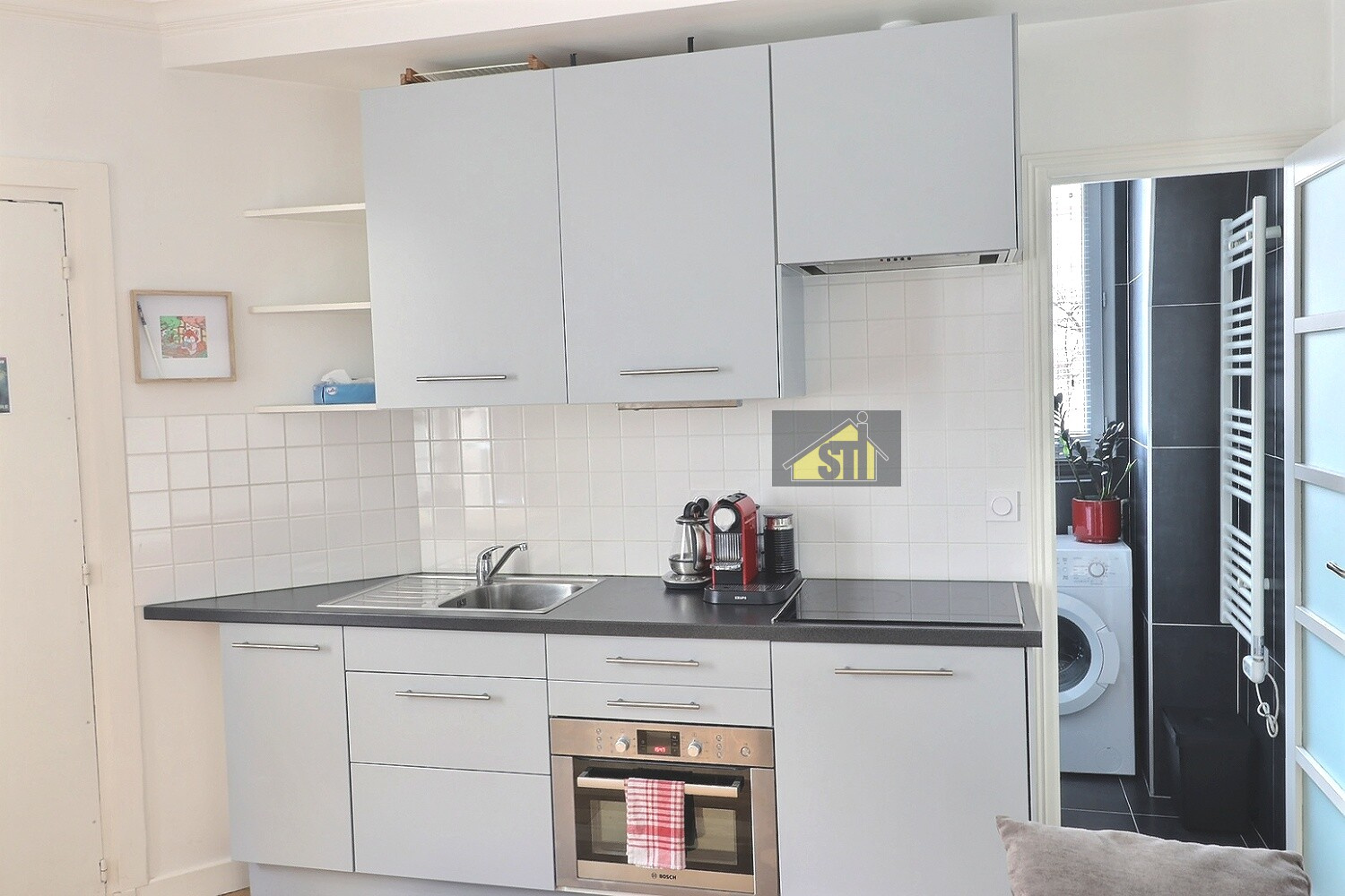 EXCLUSIVITE STI. Raspail Edgar Quinet. Joli deux pièces de 29m² en parfait état. Situé entièrement sur cour, clair et calme avec une exposition sud-ouest, composé d'un séjour avec son coin cuisine américaine, une chambre avec rangements, une salle d'eau avec WC et coin machine, une cave complète ce bien. Aucune perte de place, plan parfait.