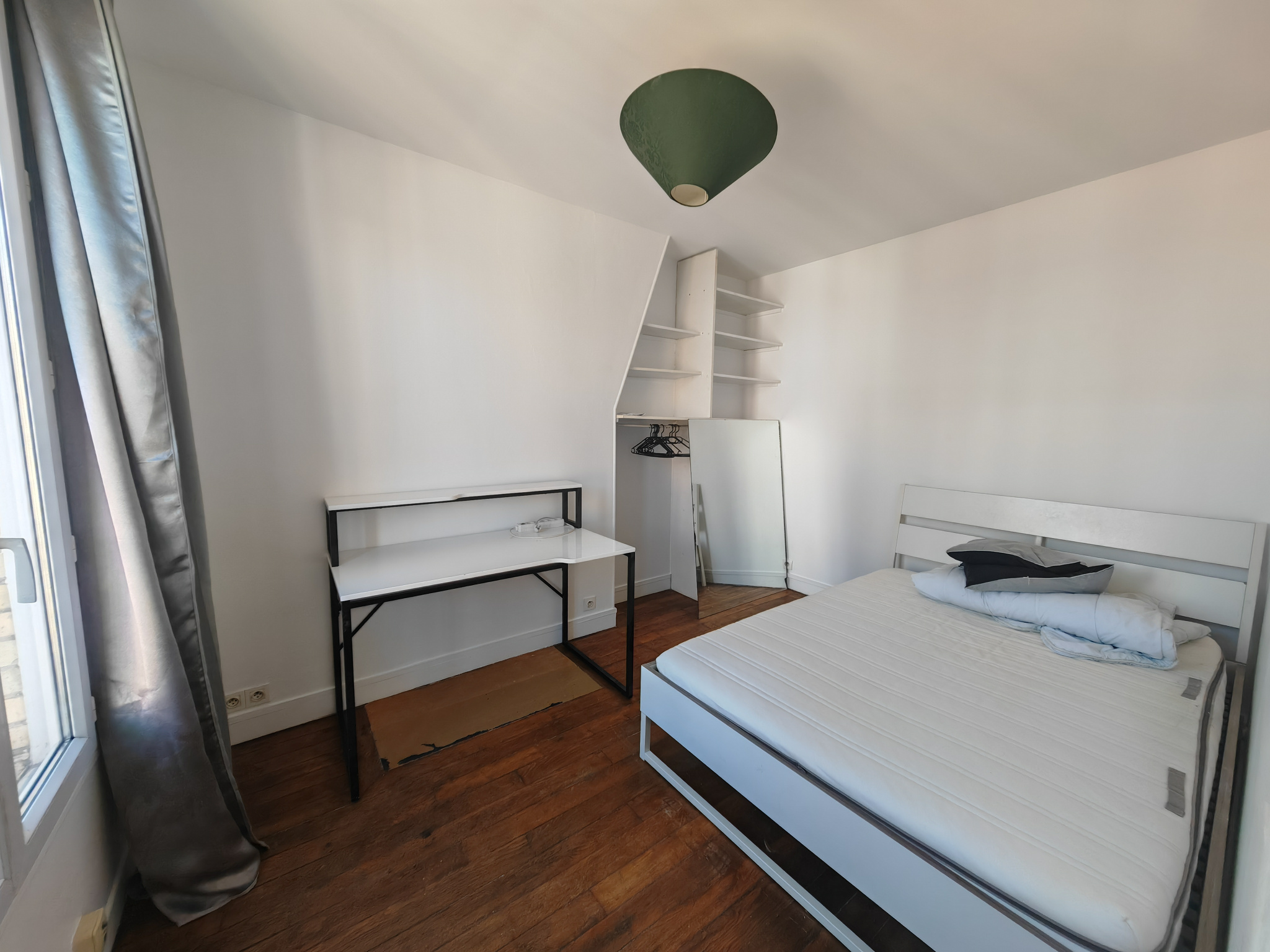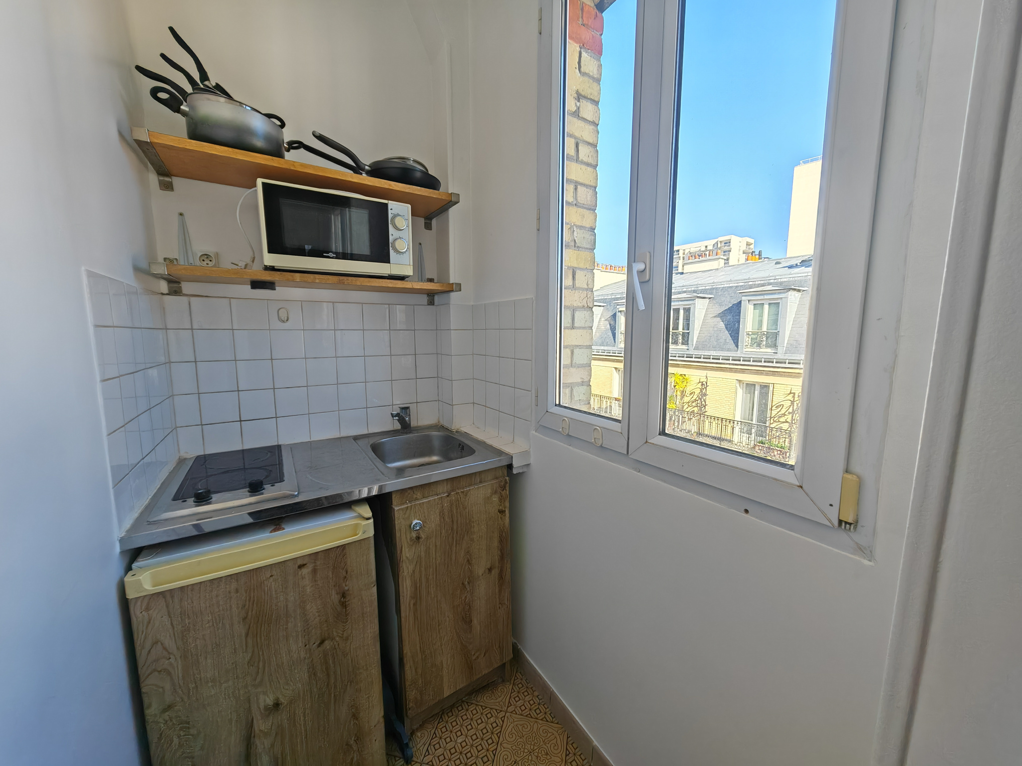 Situé au 6b rue Jonquoy, au 5ème étage sans ascenseur, deux pièces meublé comprenant une entrée, un séjour, une petite cuisine séparée, une chambre et une salle d'eau avec wc. Disponible immédiatement.